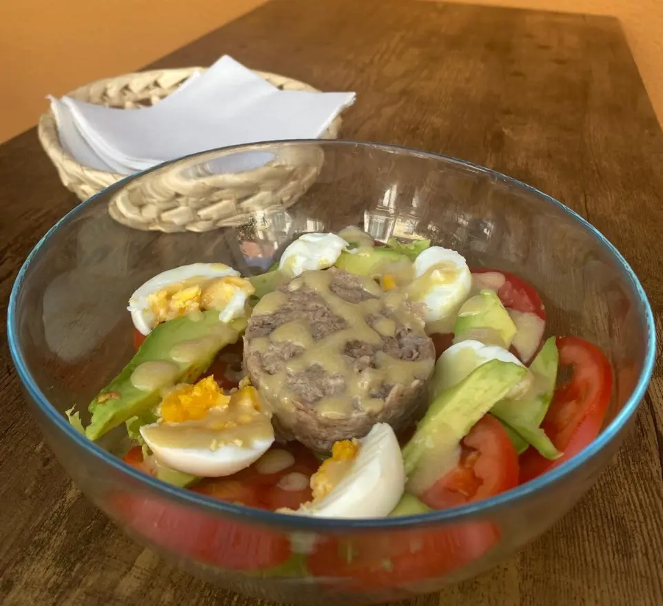 Atún, tomate, huevo, lechuga, aguacate, aliño casero. De aquí, con alma.